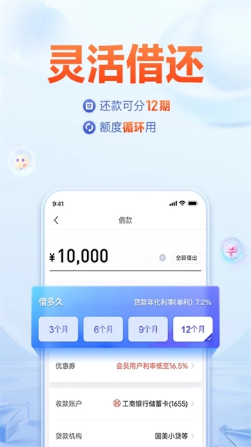 1、用户可以在线快速的提供自己的信息获取贷款额度;
