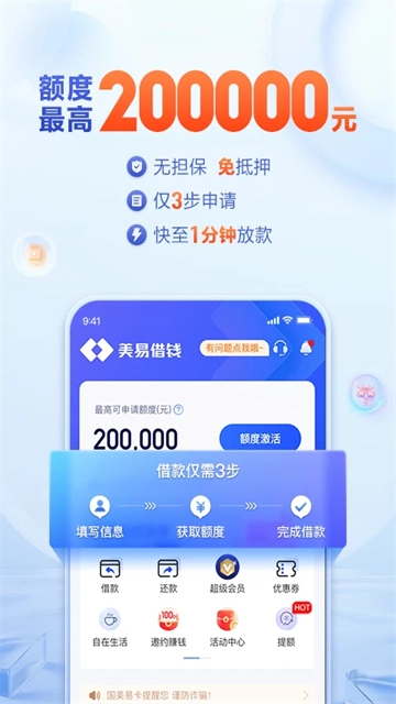 授信额度范围处于500元至5000元之间,可提供7天到30天期限的贷款,每日费率为0.3% 。这其中,0.03%是借款人需支付给国美易卡的利息,0.27%则是用于征信的快速审核费用。所有费用都会在贷款到账前,由国美易卡进行划扣。举例来说,若借款金额为1000元,还款期限为10天,那么应缴纳的费用为1000×0.3%×10 + 1000×0.27%×10 = 57元。