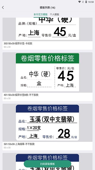 烟草价签管理打印软件的突出亮点,在于为用户提供了极为便捷的价格打印服务。只需开启蓝牙与打印机相连,挑选想要打印的卷烟,再选定合适的模板与尺寸,一键点击打印,即可迅速获取价格标签。此外,该软件还具备丰富多样的模板供用户选择。
