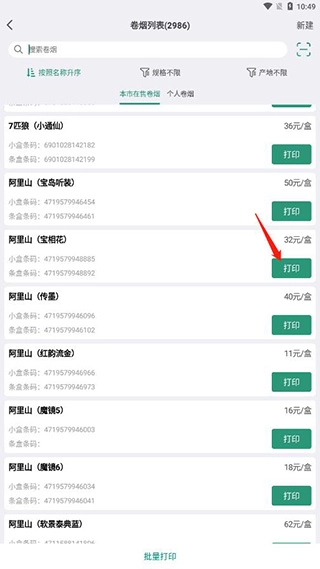 1、打印烟草价签的步骤十分简便,待价格确定好之后,点击需打印的烟草。
