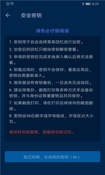 在线生成个人专属密钥,用于保护个人记录的信息,避免他人查看