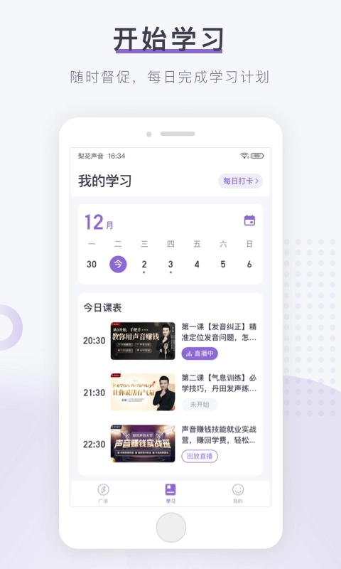 4、随时都能督促学习,每天实时提醒课程安排;