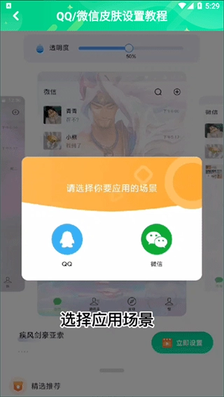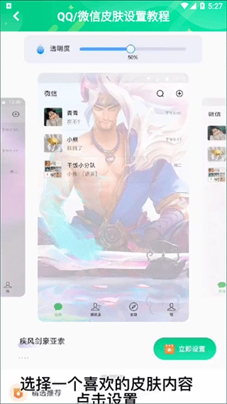 1、通过本站访问,挑选一款你心仪的皮肤内容,点击“立即设置”;