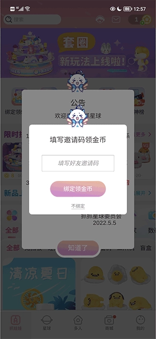 你是不是总爱泡在各大商场的娃娃机旁?对抓娃娃的玩法是不是了如指掌?现在要给所有喜欢抓娃娃的朋友带来一个好消息——手机上也能体验抓娃娃的乐趣啦!“抓抓星球”就是一款专门为抓娃娃爱好者打造的软件,它功能齐全,为用户准备了各式各样的娃娃。在软件主页,你能浏览到所有娃娃的详情和相关活动;星球页面里,可以看到其他玩家分享的抓娃娃成果;多人模式中,还能和陌生人组队比拼抓娃娃;而在商城板块,你可以把之前抓到的重复或不喜欢的娃娃兑换成积分,再用积分换取对应的商品。
