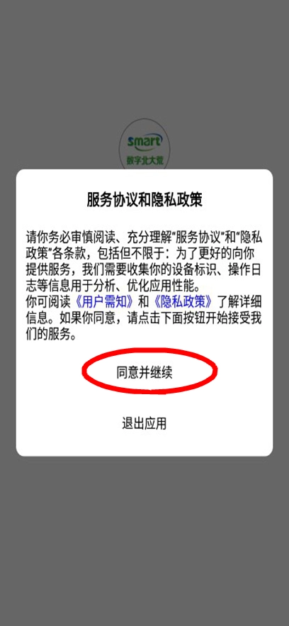 1、安装并打开,点击同意并继续,同意隐私政策。