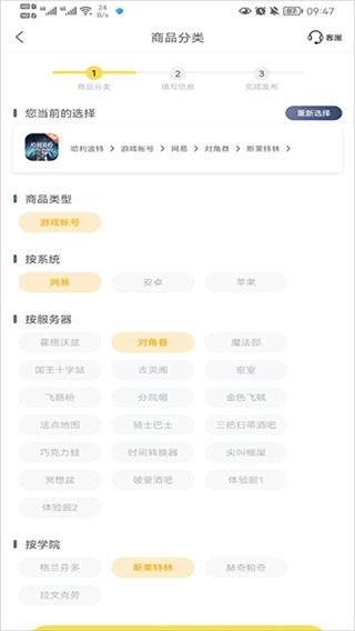 4.选好心仪账号后,点击“联系客服”按钮,即可跳转至该游戏板块的在线客服界面,进行一对一的沟通交流。