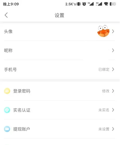 2、在设置界面中找到提现账户选项,点击后进入提现账户界面。