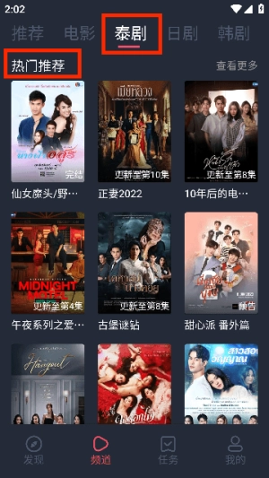 1、进入应用频道页面,点击泰剧板块可浏览热门推荐作品。