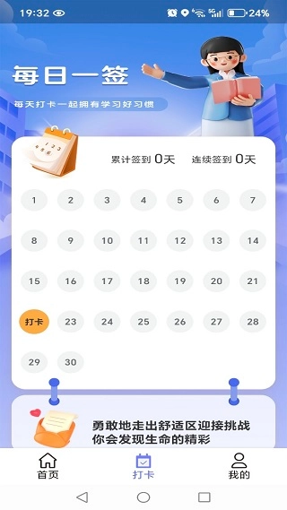 3、打卡页面带来了学习签到功能,实时记录你的复习进度。