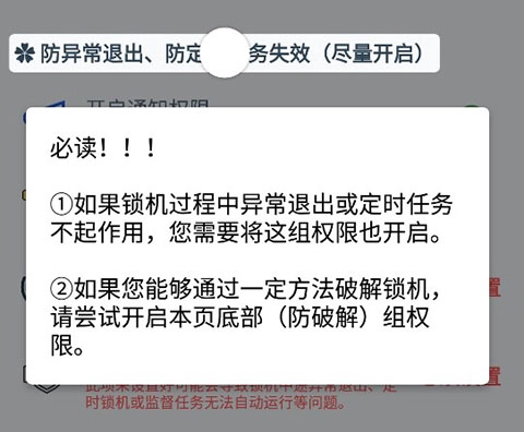 ①要是锁机时出现异常退出的情况,或者定时任务无法正常运行,您就得把这组权限也打开。
