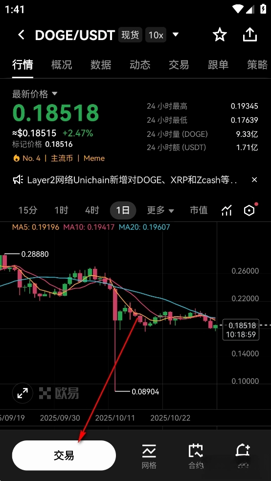 如果想要交易可以点击货币下方的【交易】