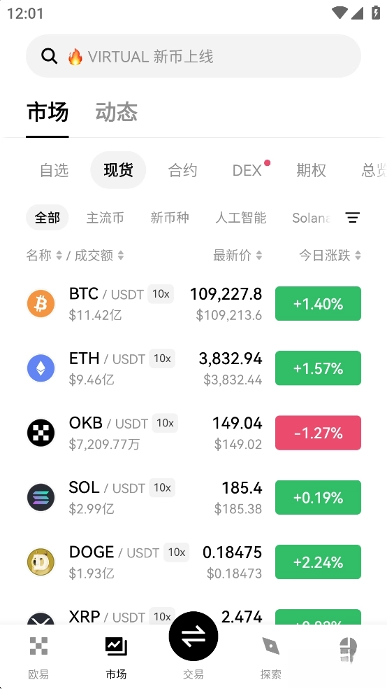 《OKX》(中文名《欧易》)是一个服务全球用户的数字货币交易平台,提供比特币、以太币、瑞波币、狗狗币等多种热门币种的交易服务。用户可在平台内查询各币种的实时价格、历史走势图表及详细介绍,并通过现货、合约等多样化交易模式自由进行买卖操作。