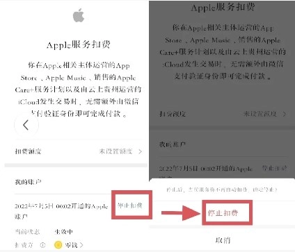 需要说明的是,付费方式是可以自行选择的,包括支付宝、微信和银行卡这几种。我当时选择的是微信支付,因此图里展示的例子是关于微信渠道Apple服务扣费的取消操作。