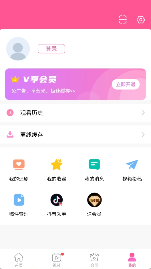 3、在“我的”界面可以查看观看历史、收藏和缓存的视频