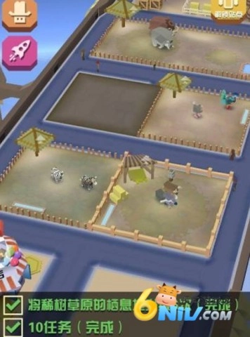 3、游戏内设有多种地图,每张地图均包含五个关卡,玩家完成各关卡后会有新动物上线。每张地图总共可解锁七个动物。此外,玩家还能使用两个动物园,点击左侧的火箭图标,就能解锁侏罗纪公园、奥林匹斯山、长城等丰富多样的地图,众多新奇的动物与景观正等待玩家探索。