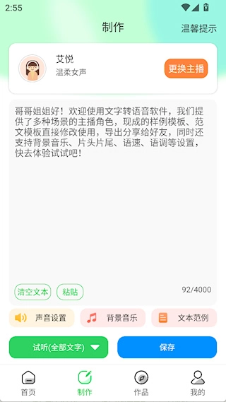 5、基础文本编辑:具备基础的文本处理功能,能够对输入或导入的文字进行添加、删除、修改等操作,在对内容进行优化调整后,可将其转换为语音。