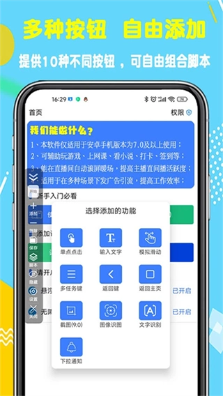 粒可辛自动点击器是一款适用于安卓手机的强大自动点击工具,它能够模拟人工的屏幕点击动作,帮助用户在使用手机时省去繁琐费力的手动操作。该软件支持多种功能,包括文字输入、模拟滑动、单点点击以及文字识别等。它可以替代双手,辅助用户在手机桌面或屏幕上进行点击操作,最快能在1秒内完成200次点击,并且提供点击手势与滑动手势的组合操作功能。