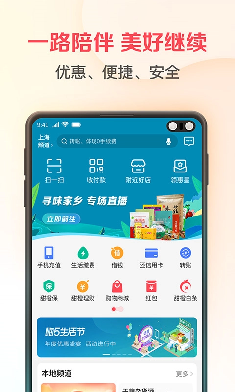 4、本地化生活服务:涵盖O2O商超、加油支付等场景,每周五至周日享常态95折优惠,更有丰富营销活动加持,折扣力度大,使用便捷性强。
