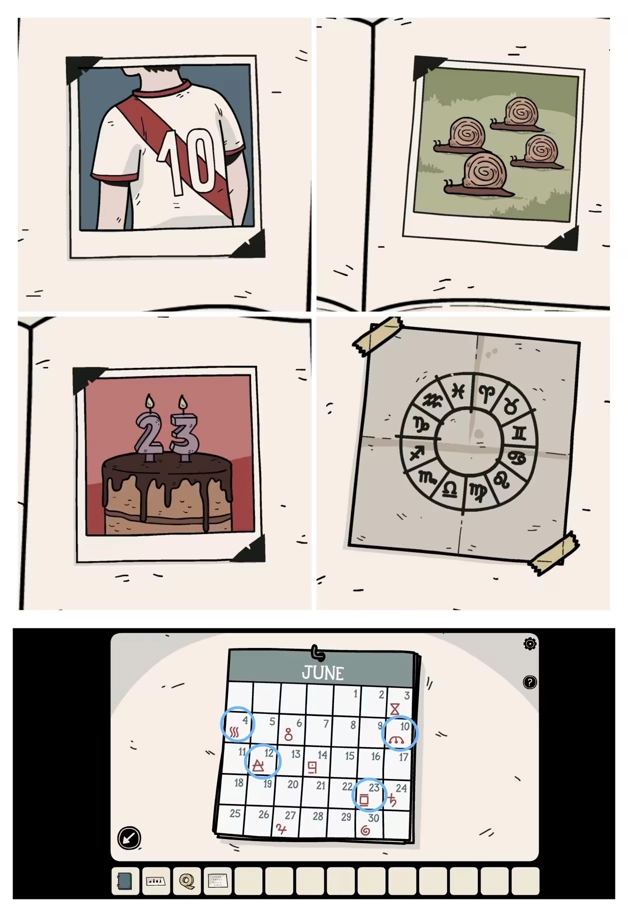 6、打开笔记本观察四张照片(注意数字和数量),再到二楼第一房间门口结合日历获得四个「符号」