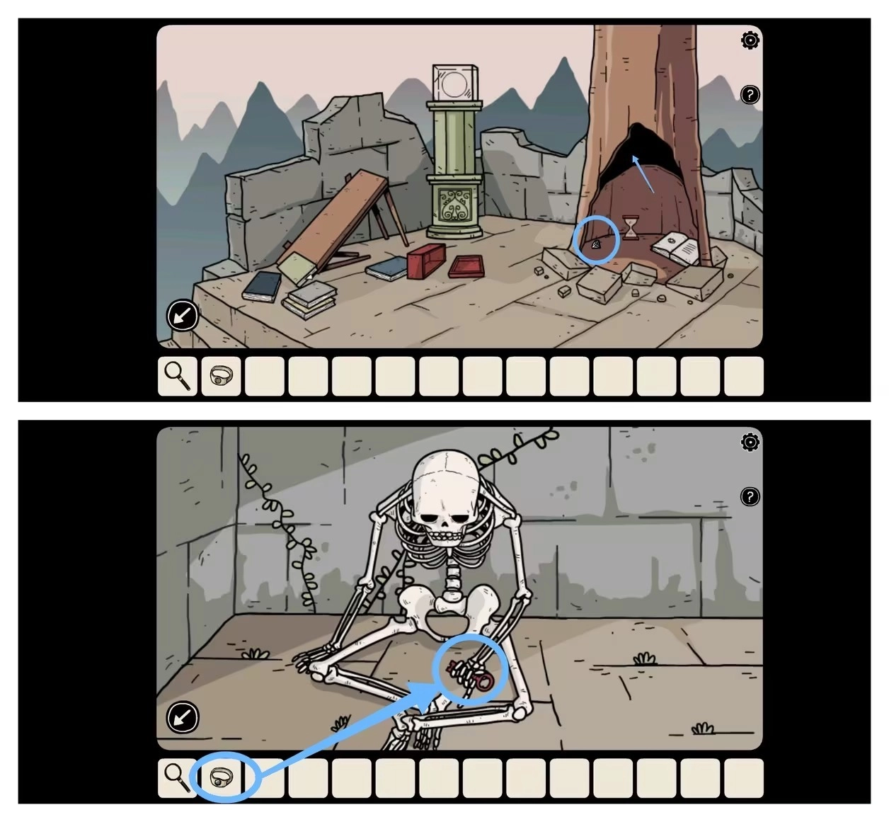 8、到山顶用钥匙打开树洞拿到「钻石」,再与戒指组合,之后到神庙的楼梯间与骷髅兑换「钥匙」。