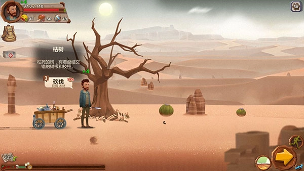 角色行进的过程中,除了一个个事件外,地上还会随机出现一些可以拾取的资源,比如药草、枯草、石子等等,房子也会出现各种食物和零件,这些千万记得收入囊中,任何资源都极为宝贵,一丝一毫不能浪费。