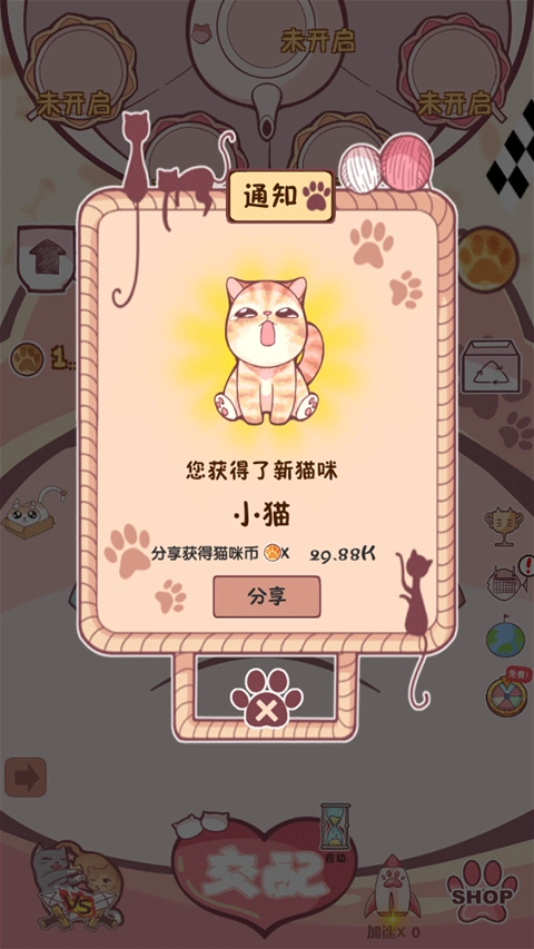 1. 首先得让两只猫匹配一起就能出现新的小猫咪。