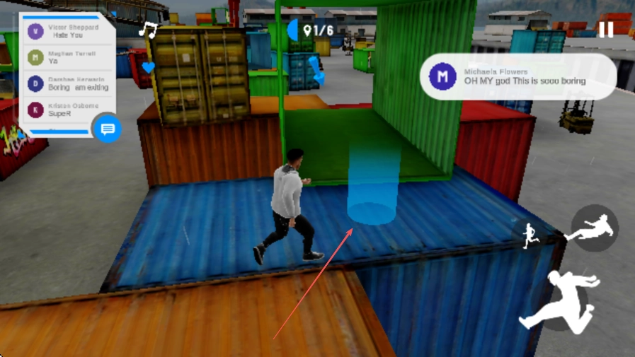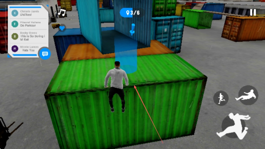 2、看到右侧跳跃按钮,点击可让角色跳跃,借助跳跃登上集装箱。