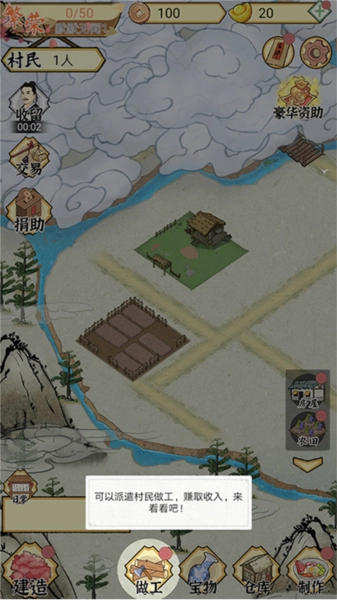 5、获得村民后,可以派遣村民做工,赚取收入;