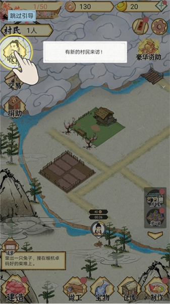 2、每隔一段时间就会有村民来访,点击【收留】选项;