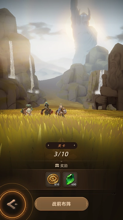 2、进入游戏,就开始了游戏的主线剧情,立刻需要进入战斗,需要您完成英雄的阵型放置,即可自动开打;