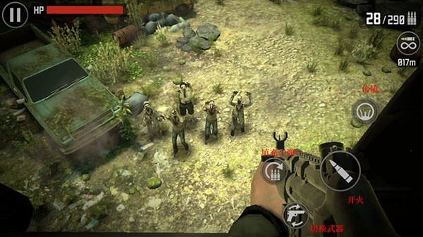 1、猎杀模式:来自四面八方的僵尸将蜂拥而至,让你防不胜防,请快速拿起枪支射击。