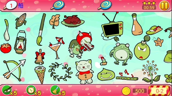 游戏里设计的道具种类不算多,但每一样都很有针对性,真是麻雀虽小五脏俱全。“强力扫把”能一下子清除画面上所有干扰物;“闹钟”可以给玩家延长宝贵的挑战时间;“复活爱心”能在游戏失败时,让你不用从头开始,直接在当前关卡满状态继续挑战;“火眼晶晶”在玩家找不到目标时特别好用,能直接标出正确物件。虽然道具数量不多,但玩家在冒险路上可能遇到的主要困难,它们基本都能给出解决方案,这让人忍不住感叹:道具不在于数量多少,实用才是关键。所有这些实用的小道具,都能用在游戏过程中得到的金币来兑换。