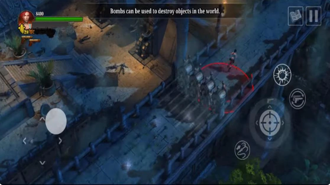 1、操控角色穿梭于丛林与遗迹之间,探寻未知地域,战胜各类敌人。