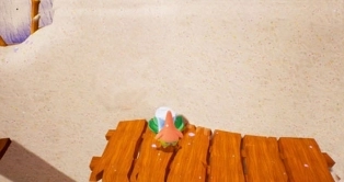 3、接着在水涨满之前跳到有冰冻果冻的平台上,然后趁水位下降前将果冻扔进水里。