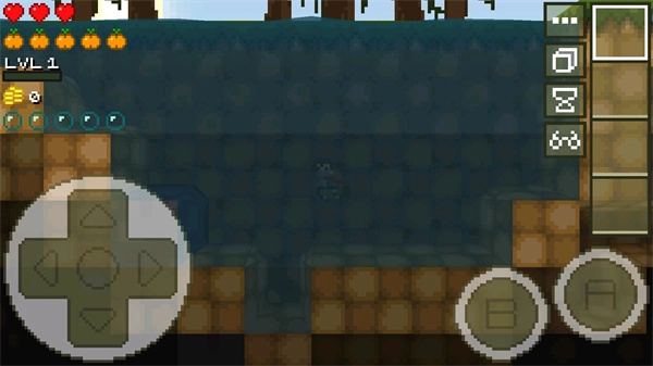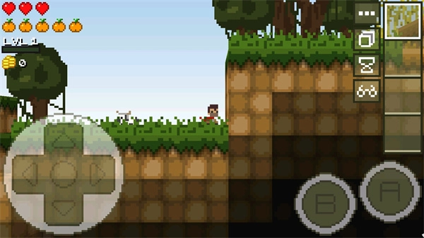 2、如何进行砍树、挖矿一般的树木会在后面一个界面里面,也就是按照之前的上箭头加B箭;挖矿则是可以挖两个界面,一样的操作方式可以将后面的矿石挖出,就不需要花费太多空间一直挖第一面的矿石了。