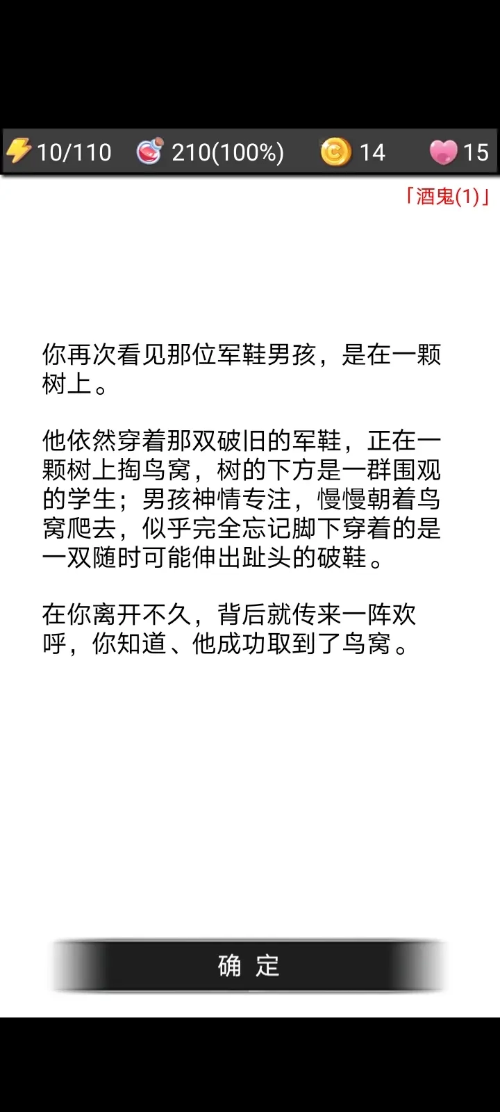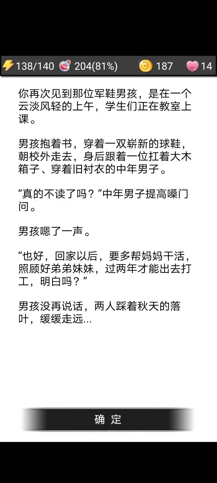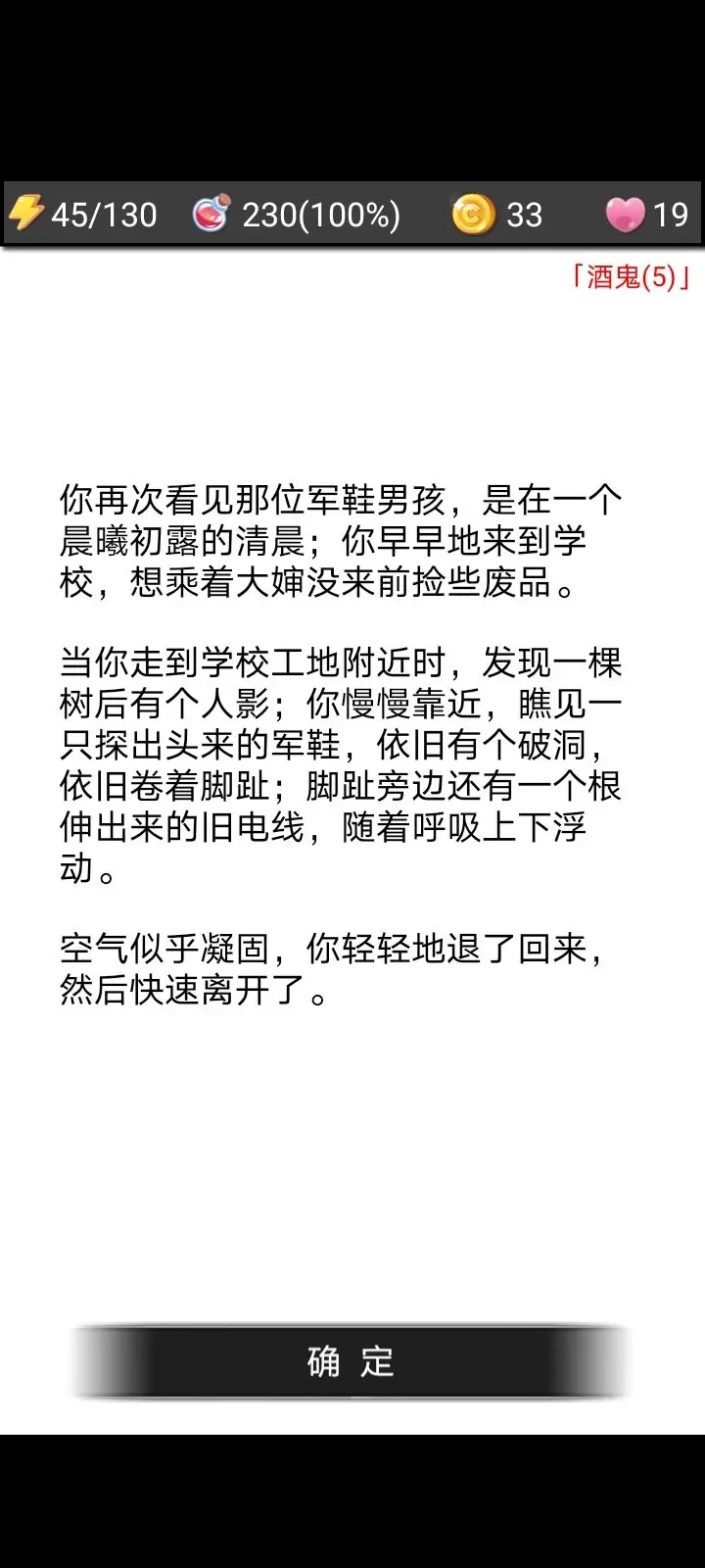 在初次遇到军鞋男孩前,你的背包里是否装有木器,会触发两种不同的场景,并且这两个场景各自又对应两种结局,总共加起来就是四个结局。