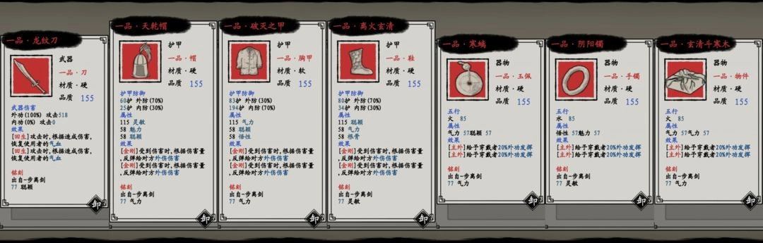 外功:刀、硬头、软甲、硬靴、三首饰。