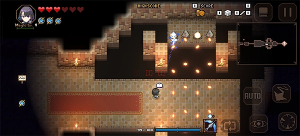 游戏沿用经典的双摇杆操作机制:左侧摇杆负责操控角色的移动轨迹,右侧摇杆则用来确定射击的朝向。每次踏入地下城,里面的结构和房间排布都会进行随机重置,玩家得在变幻莫测的迷宫里探寻前进的路径,同时通过战胜路上遇到的敌人来积累经验值以及获取各种各样的道具。