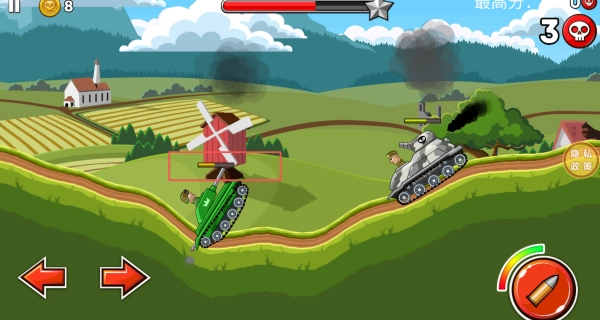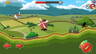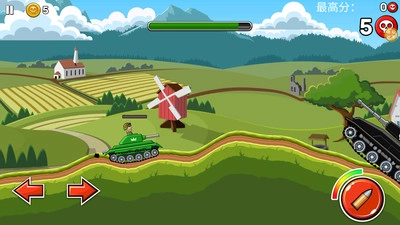 1、点击左右箭头,可控制坦克向左或向右移动;点击子弹按钮,即可发起攻击。