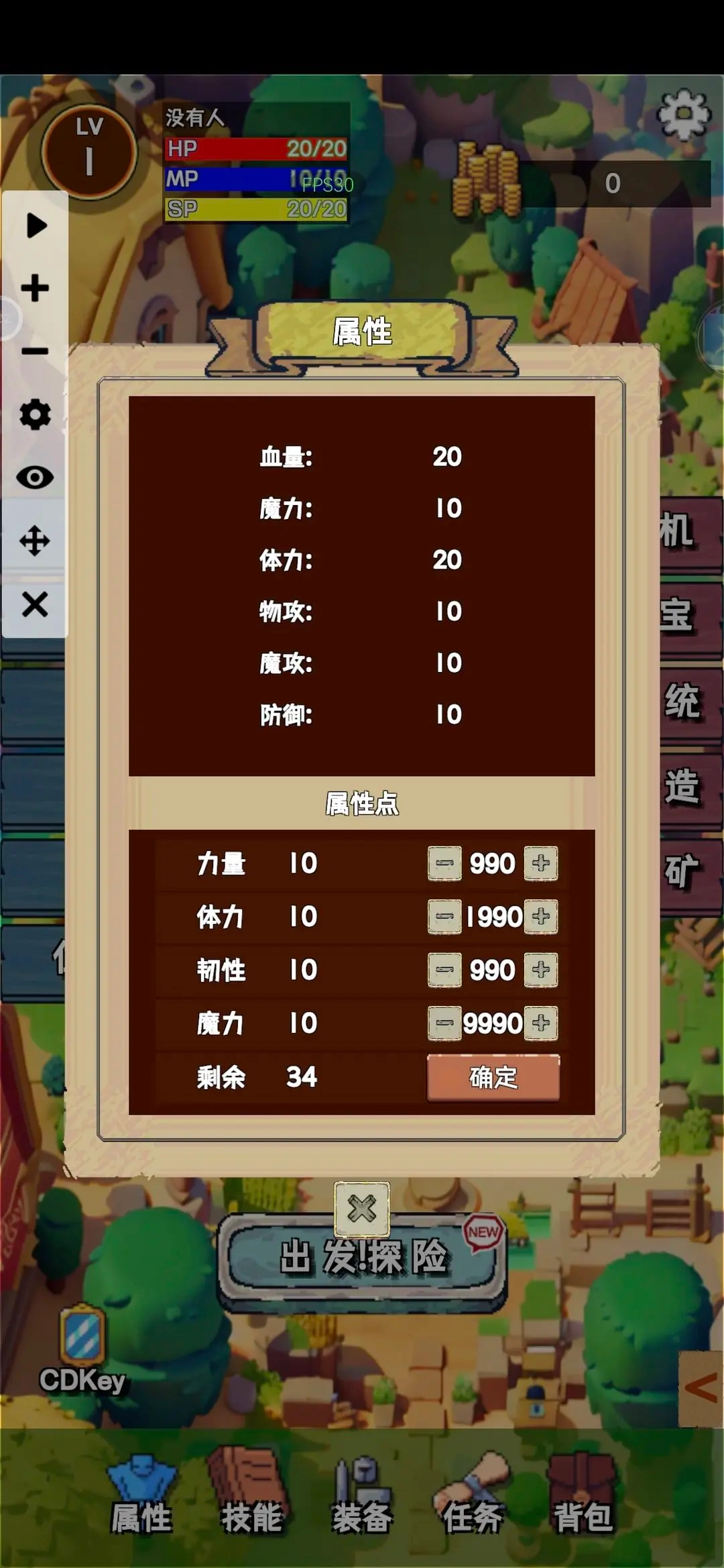 开局身无分文时先去狗系统处签到,领取作者发放的兑换码,拿到初始资金后点击住宿选项存档。之后开始打怪,这游戏的核心伤害来源是地刺,记得备足血药,把当前地图的所有区域都探索完就能解锁下一张地图。初期靠买药水勉强维持生存,攒够金币可以在左侧购买初期装备。等金币多一些,就给狗系统看几十个广告,换个便宜的神器,接着把钱都用来买法杖和戒指,拿到狗系统那里进行吞噬。加点优先加魔法和体力,再买一个火雨群攻魔法技能并在技能界面启用,这样只要血量充足就能持续秒怪。铸造界面拉到最底部有个加大量血量的戒指,可以刷材料制作,看几个广告能提高打造概率(别退出游戏,否则概率会重置),造好后戴上。每次遇到怪物就释放火雨,所以我是火雨法师。